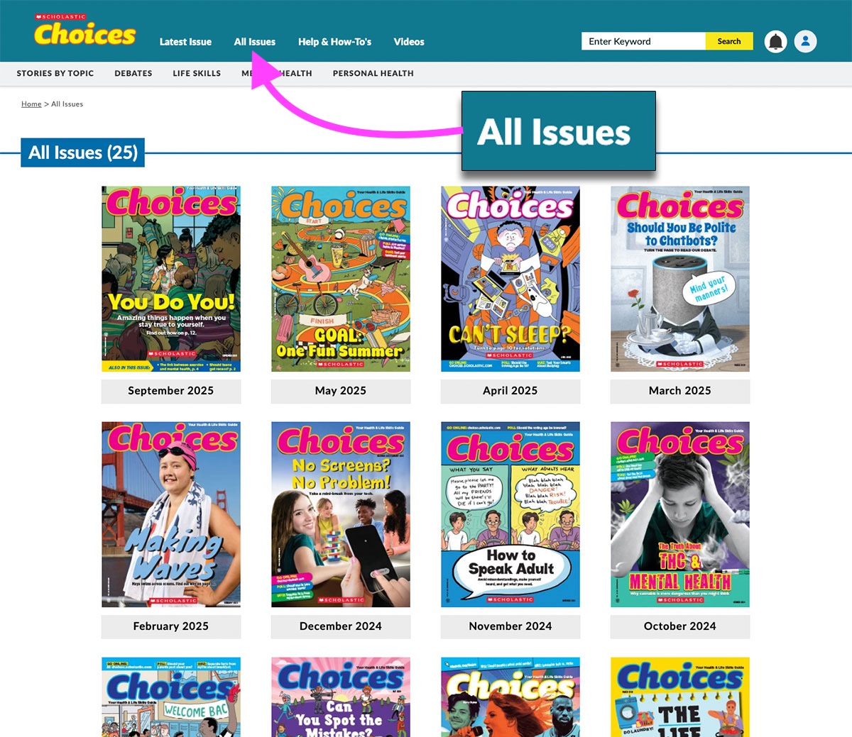 Looking for something specific to tie into your current unit? You can also search for articles that touch on any topic by using the search bar on the top right of the website. Just type in a focus you’re looking for, and you’ll get a list of magazine articles that fit what you need.